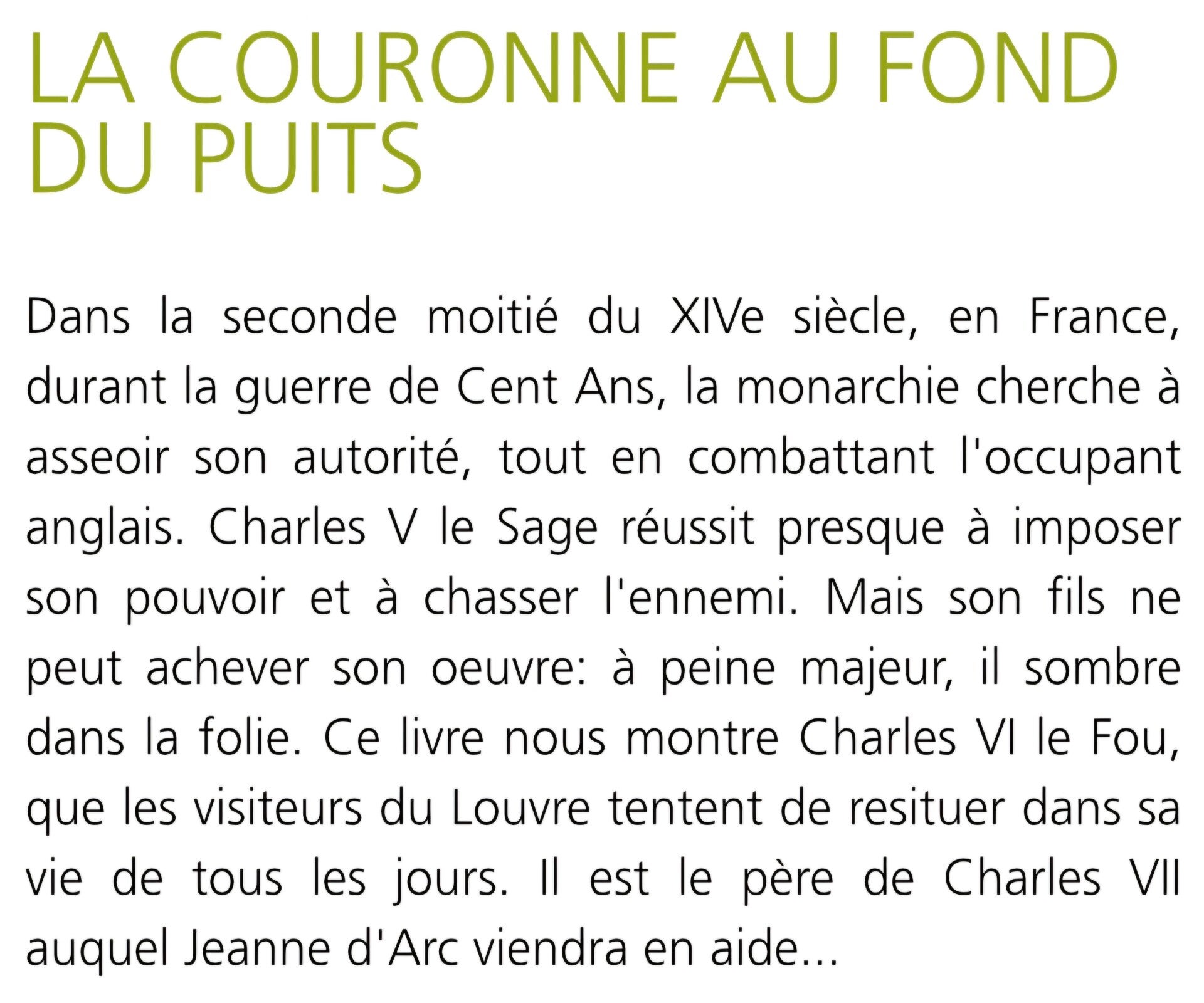 Ecole des loisirs 9 à 11 ans : La couronne au fond du puits
